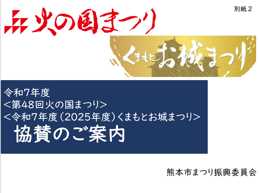 <第48回火の国まつり><令和7年度(2025年度)くまもとお城まつり>へのご協賛について