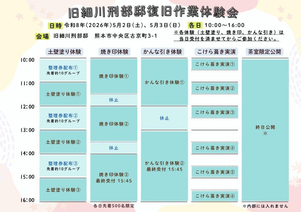 日時 令和8年(2026年)5月2日(土)、3日(日) 10:00~16:00