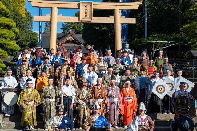 The exhibition started with a parade into the park. After winding their way through the gardens, the parade stopped at Izumi Shrine to pray and take a group photo.